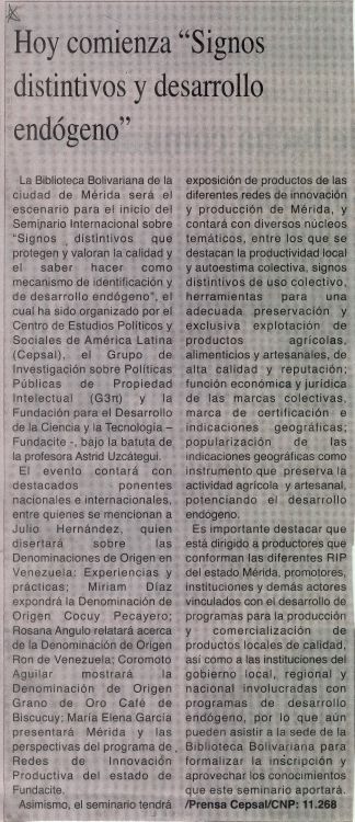 Título : Hoy comienza "signos distintivos y desarrollo endógeno"