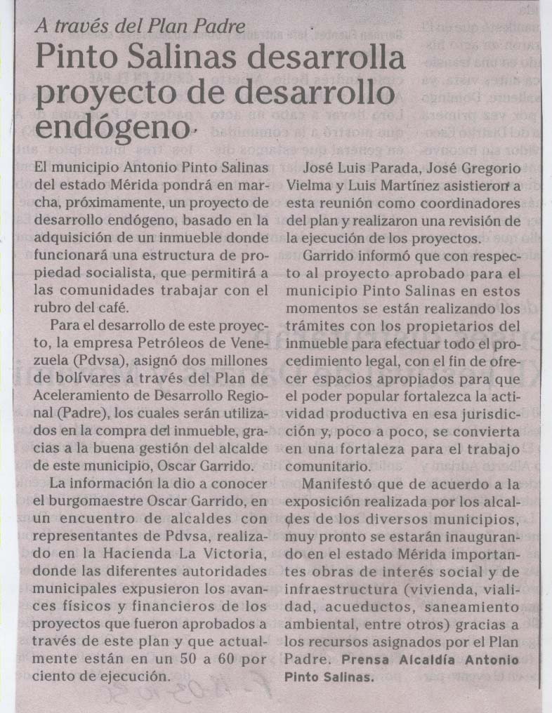 http://repositoriodigital.fundacite-merida.gob.ve/handle/123456789/6706| Título : | Pinto salinas desarrolla proyecto de desarrollo endógeno |
