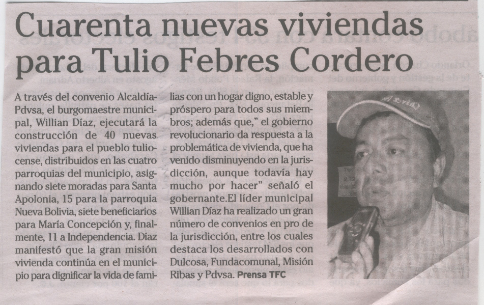 http://repositoriodigital.fundacite-merida.gob.ve/handle/123456789/7271| Título : | Cuarenta nuevas viviendas para Tulio Febres Cordero |
