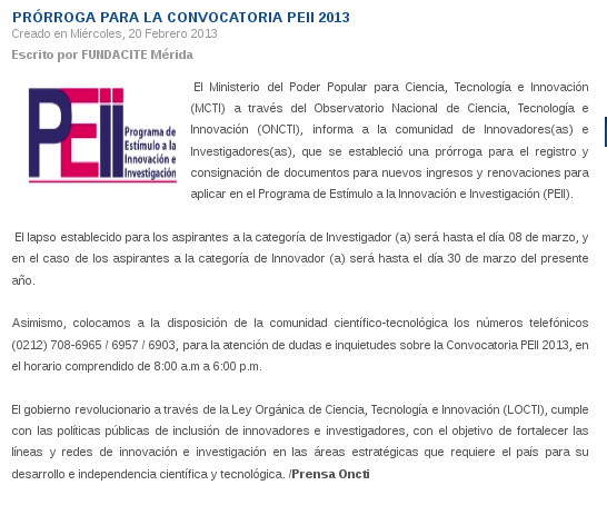 http://repositoriodigital.fundacite-merida.gob.ve/handle/123456789/7427| Título : | Prórroga para la convocatoria PEII 2013 |