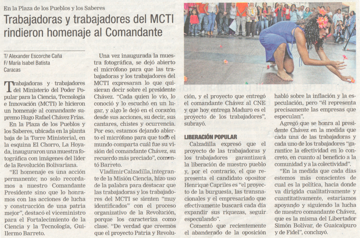 http://repositoriodigital.fundacite-merida.gob.ve/handle/123456789/7443| Título : | Trabajadoras y trabajadores del Mcti rindieron homenajes al comandante |