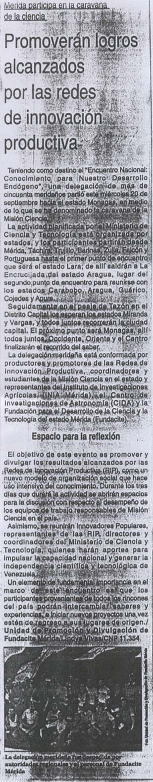 http://repositoriodigital.fundacite-merida.gob.ve/handle/123456789/7631| Título : | Promoverán logros alcanzados por las redes de innovación productiva |